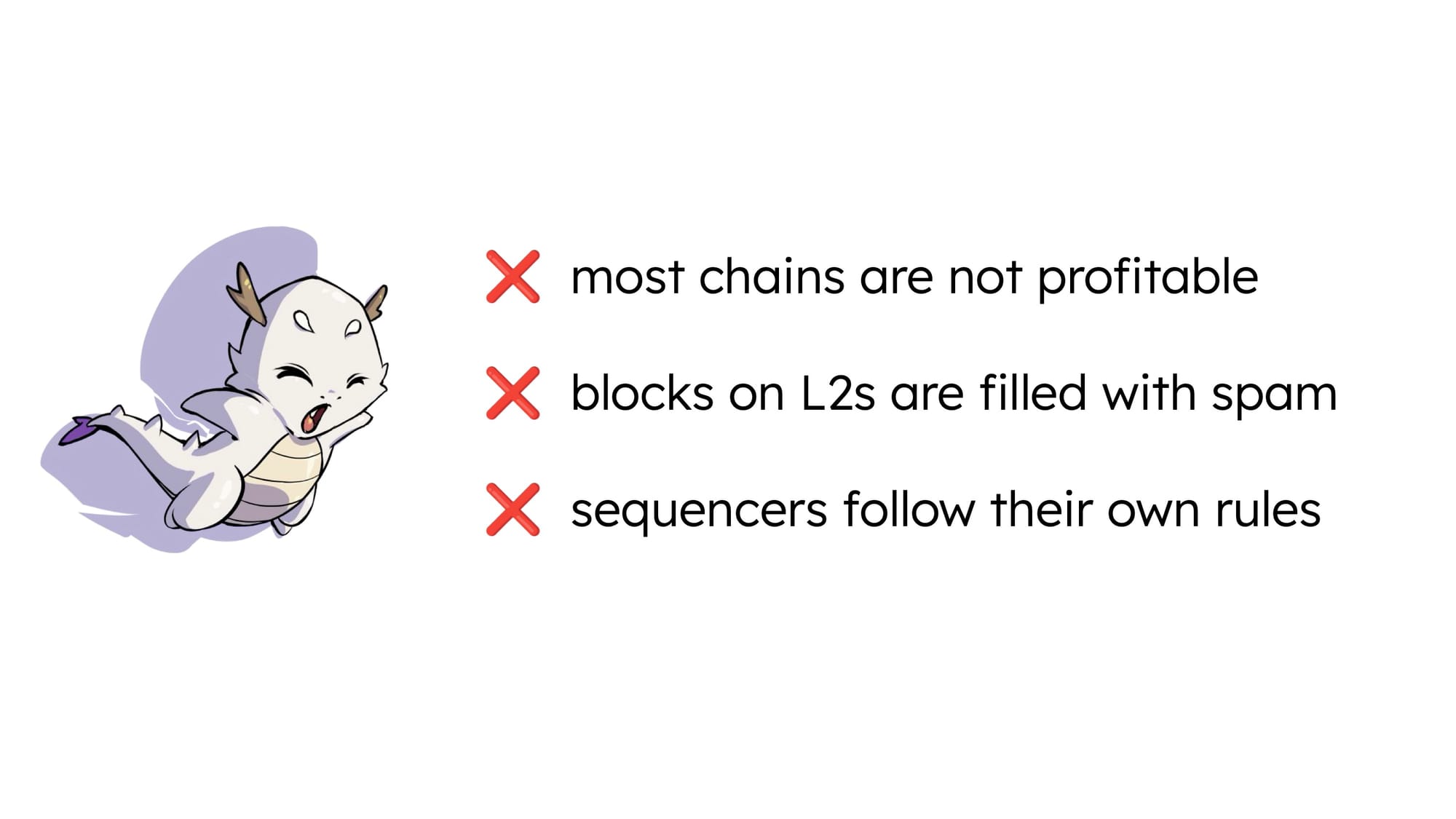 The presentation clearly laid out three main problems currently facing L2s. The first is that most chains are unprofitable; the second is that a significant portion of L2 blocks are filled with spam, with some chains seeing over 60% of transactions attributed to spam bots. Finally, there is the risk of centralisation, with sequencers and block builders following their own rules.